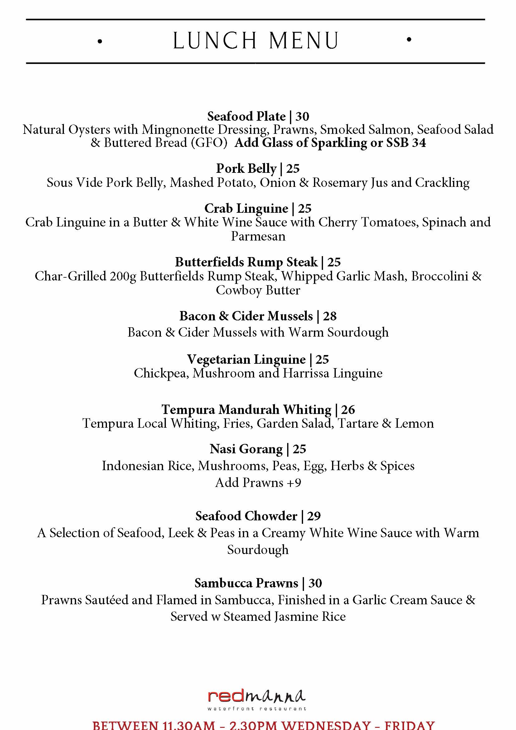 Our A La Carte Menu is also available at lunch time.